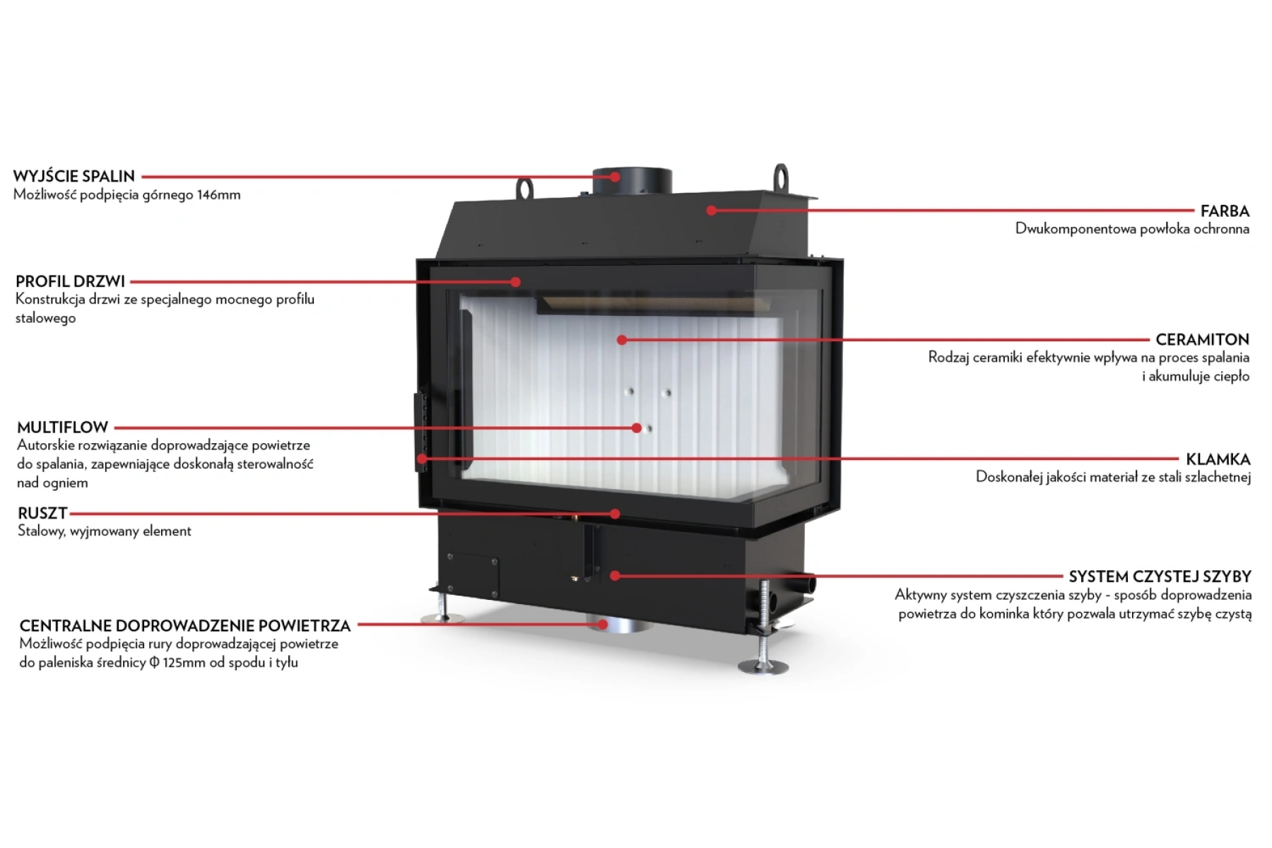 | Wyposażenie opcjonalne - za dopłatą | • czarny ceramiton • klamka po drugiej stronie • sitoduk blackline • ciemna zaślepka popielnik |